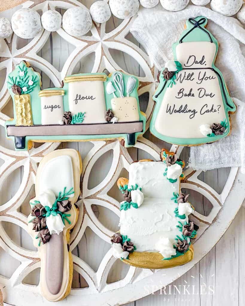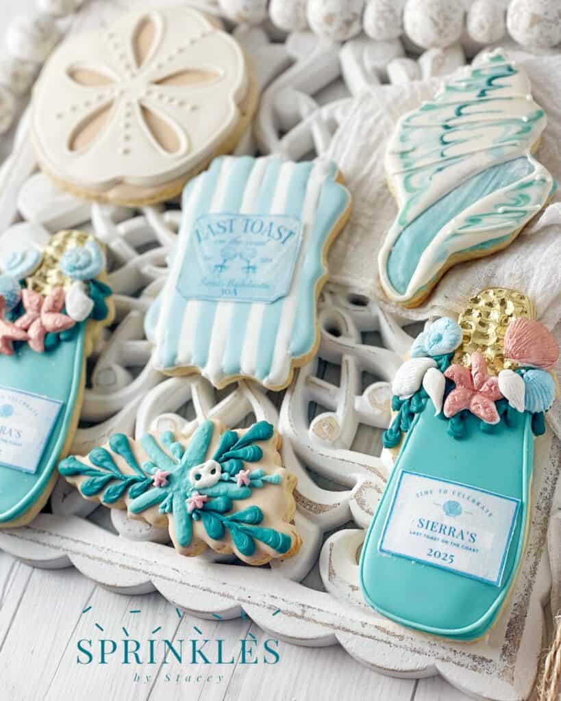 • Custom decorated cookies range from $7.50–$10.50 each, depending on size, level of detail, and design elements